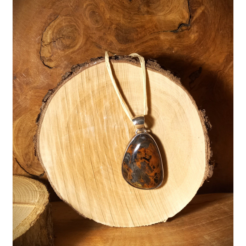 Pietersit- Edelstein- Anhänger in 925 Sterling Silber gefasst in harmonischer Form.