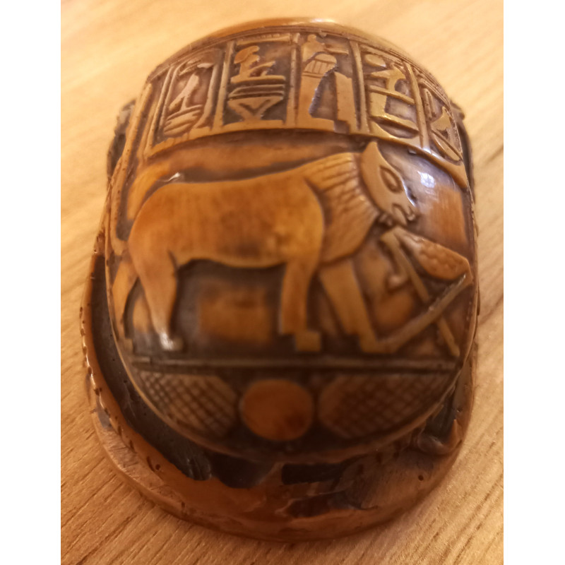 Ein Skarabäus ist ein Käfer, der in der altägyptischen Kultur eine wichtige Rolle spielte. Er wurde als Symbol für den Sonnengott Chepre und als Glücksbringer verehrt. Skarabäen wurden als Amulette, Siegel oder Schmuck getragen und dienten oft als Glücksbringer oder zur Darstellung von Auferstehung und Wiedergeburt.