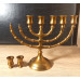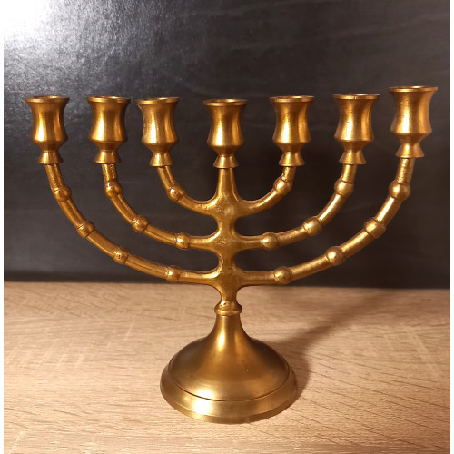 Die Messing Menora ist bereits einige Jahrzehnte alt. Der Kerzenhalter hat altersbedingt authentische Gebrauchsspuren, Patina, die dem Kerzenhalter den gewissen Charm verleiht.